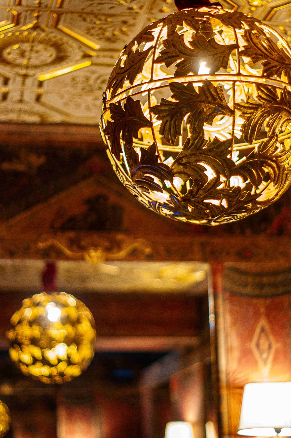- La lanterne Artémis décorée de feuilles d'or.