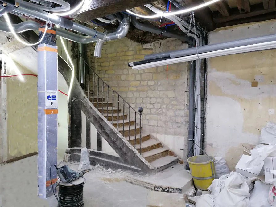 Notre démarche a été de travailler autour de plusieurs points. Tout d’abord, la conservation des traces datant de l’époque de la construction et leur mise en valeur. Ensuite, la recherche de solutions pour les mettre en valeur et éviter la suffocation visuelle. Enfin, la mise en valeur du lieu grâce à des éléments forts et des détails scrupuleusement choisis.