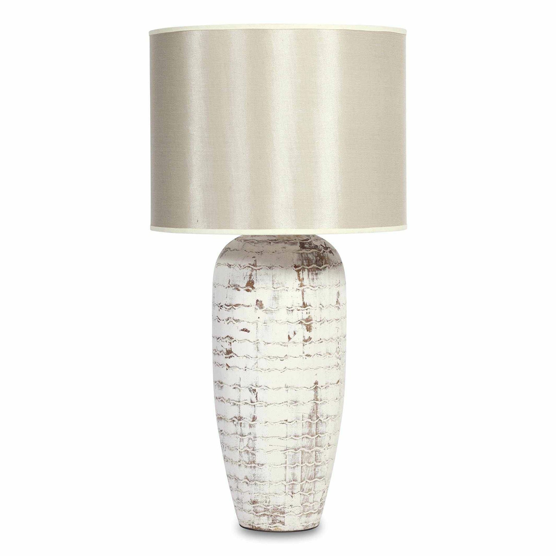Entièrement réalisé en bois, le lampe "Chaumont", d'inspiration art-déco, se présente sous la forme d’un fût élancé. Cette lampe se caractérise par sa peinture blanche volontairement irrégulière qui lui apporte un look intemporel.