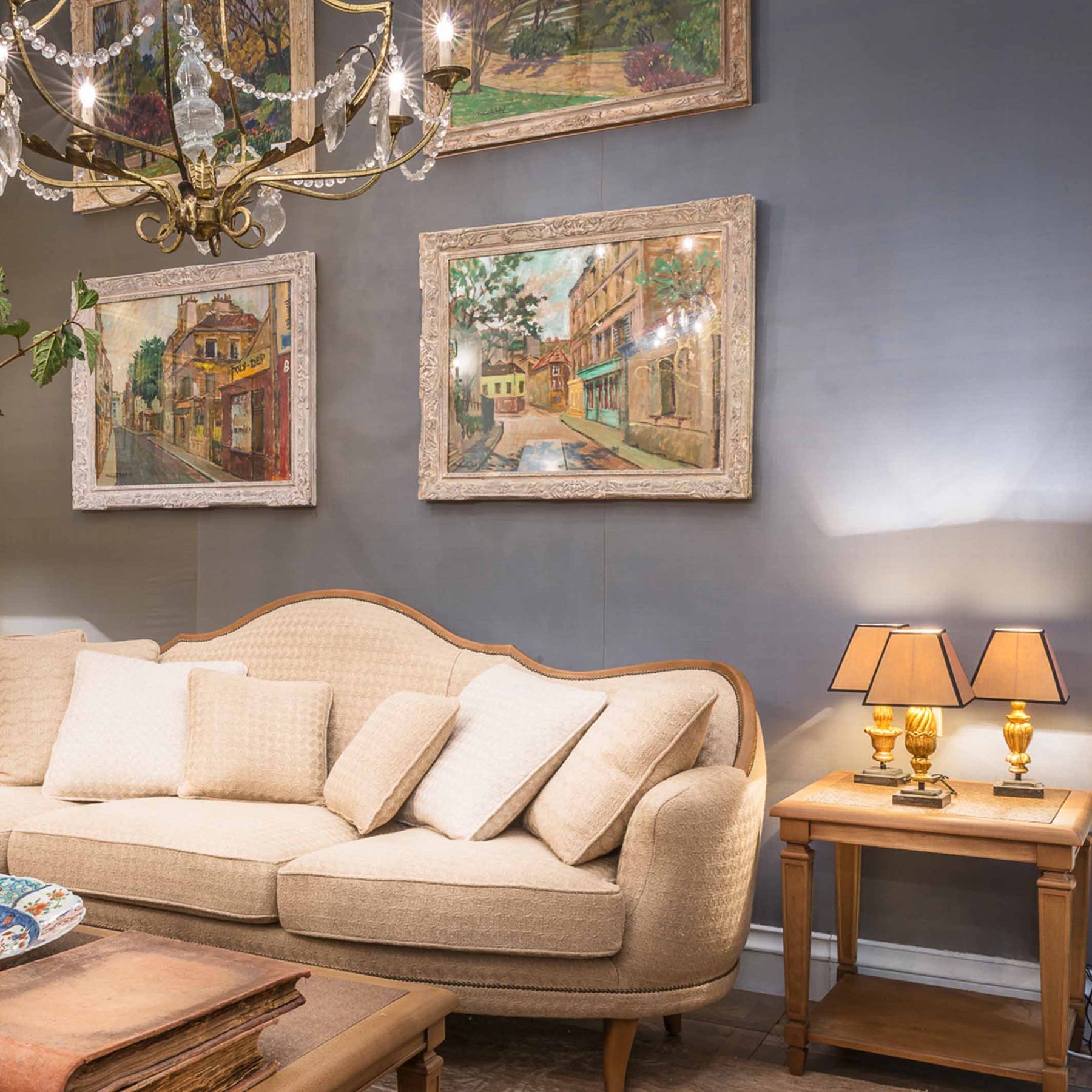 Trianon Lampe de bibliothèque en bois doré (set de 3)
